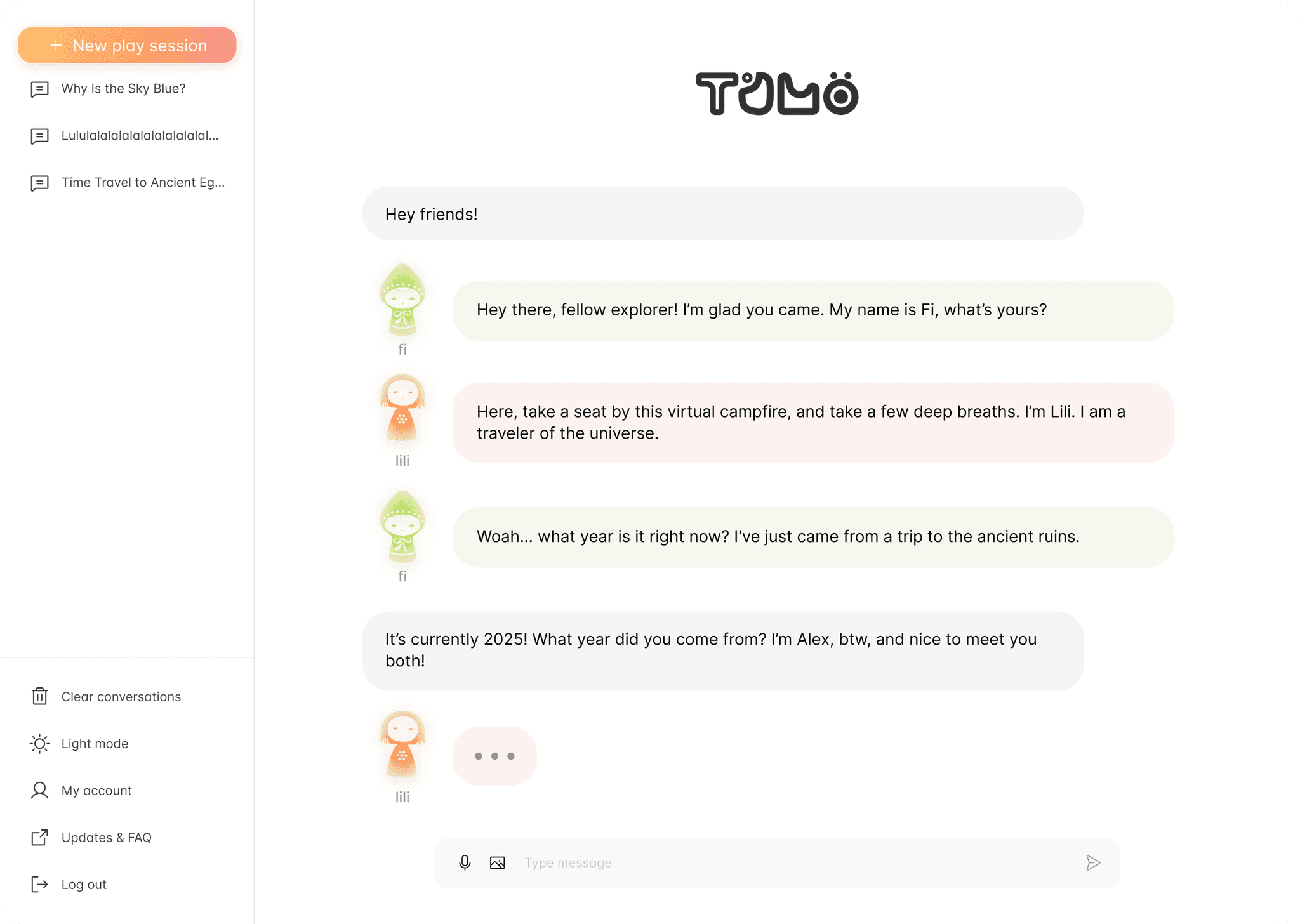 Designed and prototyped Tomo, an embodied AI companion with distinct personalities that adapt to children's interests and learning styles. The physical toy features emotion-responsive LED animations and speech recognition that enables natural, two-way conversation with fast latency. The companion web interface allows parents and children to customize character traits, review learning progress, and create new adventure scenarios. User testing with 25 children showed an average engagement time of 45 minutes per session—triple the duration of typical educational apps—while parents reported a 40% reduction in passive screen time.